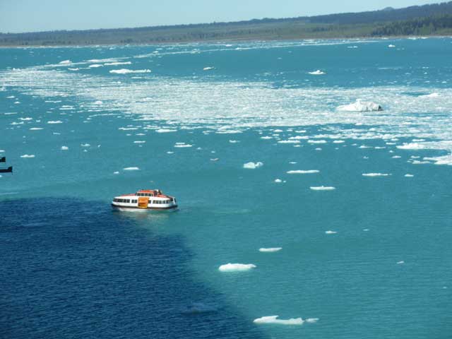 Hubbard Glacier came next. This was not a port but rather a day of scenic cruising in Yakutat Bay, to gaze upon the magnificent Hubbard Glacier. It is the one glacier in the world that certainly does not move at a 'glacial pace'. In 1986 this, the largest tidewater glacier on continental North America, moved an average of just under 5.5 feet per hour. We did not notice any perceptible movement and nor did it 'calve' while we were there but it was an awe-inspiring sight; we will never tire of the sight, sound and smell of ancient ice and the colours to be seen in it, ranging from brilliant white through shades of green and turquoise, palest blue and the deepest sapphire. Photographs cannot capture the true essence of this natural phenomenon and are always something of a disappointment, but those on the next page may give you an inkling.