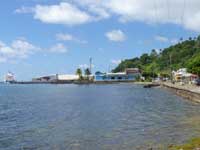 The town runs along the waters edge and is quite colourful and bustling, especially the fruit and vegetable market, which was well stocked with citrus fruit (a cross between a lemon, orange and lime), coconuts, papaya and bananas as well as some smooth, shiny, green fruit which looked a bit like a pear and I wondered if it was a variety of guava. There were lots of lovely spices and chillies and ginger roots, all for a few cents, so we were very frustrated that we couldn't buy any to bring home to New Zealand. There was a lot of shell, coconut and raffia handicraft available, some of it quite attractive, but again, we couldn't buy any as we would probably not be able to bring it home; it was quite crudely made and I doubt that it had been properly sterilised so couldn't guarantee there'd be no living organisms left in it.
