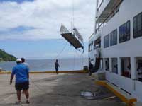 We decided to get a taxi back to the jetty for the tender back to the ship, but just after we got there the ferry left the main wharf so the ship moved alongside, which meant no more tenders. We made it to the wharf in time to watch as the gangway was lowered from the top deck, using our on-board crane… the thing was swinging about madly and we were sure someone would get their head knocked off, but as always, the chaos was organised and all was well. We got back on board just in time for lunch as it really worries the crew if you miss a meal!