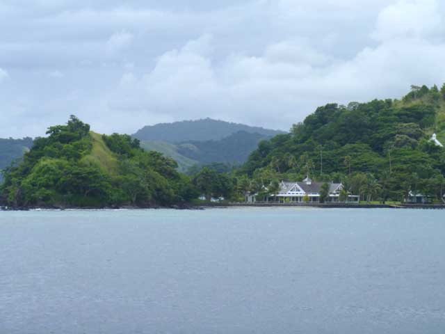 After a splendid curry lunch on deck, while we sailed back to Vanua Levu, we were taken ashore again, to a place called Whispering Tides. It's an isolated private estate owned by an American billionaire who only visits once a year, and not even that often lately. There is a huge, beautiful house, all closed up with dust sheets over the furniture, and a solitary ceiling fan going night and day to keep the air circulating and prevent mould forming. All this could be seen through the single un-shuttered window and it gave the place a somewhat haunted appearance. It would make a good setting for a mystery novel.