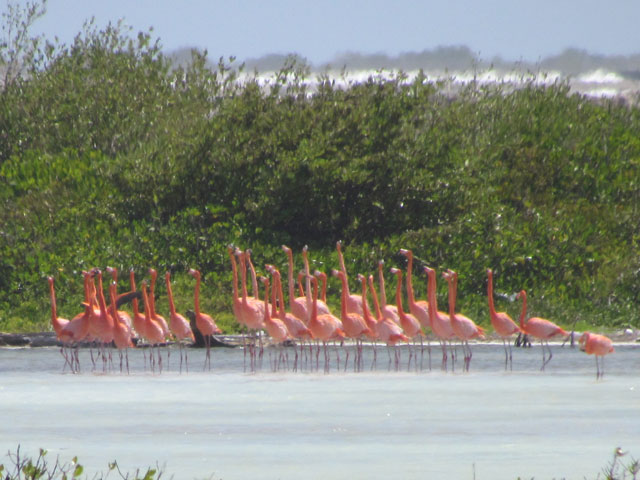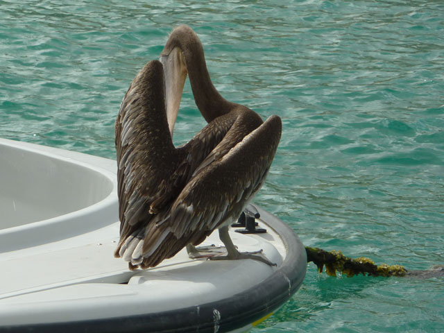 Meanwhile, Martin took a 4x4 tour for a closer look at the salt lake and flamingos on the southern part of the island. It was said that the first part of the journey required 4x4 vehicles but, in truth, the roads were no worse than our local unsealed roads and the second part of the journey was on tar seal. This was frustrating as I didn’t go on the tour having been warned it would be very rough going. The Land Rover was driven by a dreadlocked ex-policeman who was also an excellent guide. Martin had close up views of the many cacti, wild goats, iguana and donkeys in the first part of the tour and then a huge number of frigate birds at Lac Bay feeding on the waste from fishermen gutting a large Wahoo.