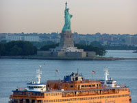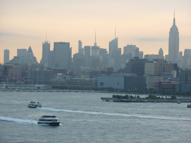 At dawn, we sailed under the Verrazano Narrows Bridge and the Manhattan skyline gradually came into view, bathed in a pearly pink light - it has never looked more magical. The Statue of Liberty and Ellis Island both showed clearly in the fabulous light of a clear day, already 20C at 6am; it rose to a sunny and steamy 30C for the rest of the day.