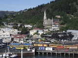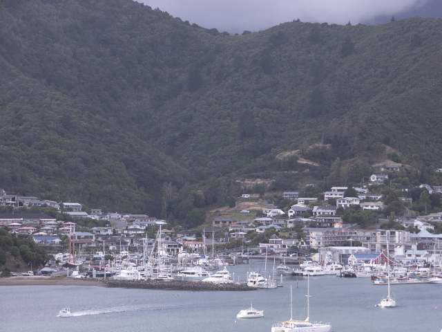 Picton, just across the Cook Strait and on the northern shores of the South Island came next and with it the most atrocious weather; very cold and extremely wet … welcome to summer! It is an attractive town in fine weather but less so in these dismal conditions, however, we donned macs and ‘enjoyed’ a brisk walk around the harbour and the small town, thus justifying a leisurely stop in a cosy café for a cup of excellent coffee. We were scheduled to depart late afternoon to cruise the Queen Charlotte Sound and view the spectacular scenery and, possibly, wildlife. Unfortunately a gale blew up and the captain decided that he could not risk untying our moorings for fear of being dashed onto the rocks, so we were destined to stay there overnight. This was disappointing but of course he was absolutely right to make the decision, for the safety of his ship, crew and passengers (in that order?!). It’s an ill wind (and it was!) however, and the delay in departure meant we were able to witness an interesting sight which Martin and Toby will no doubt discuss for hours - a train being shunted right onto a car ferry to pick up carriages and trucks which have been shipped over from the North island. Don't ask how many photos himself took “just for Toby” (of course!!!), but it was far more than enough. I found it quite interesting for the first ten minutes, but you can have too much of a good thing, you know - especially with icy rain down the back of your neck and a force 10 gale trying to rip off your all-too-flimsy cagoule!