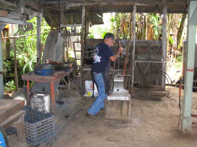 After visiting the volcano we were taken to a delightful restaurant for lunch where we had a feast of local specialities including a drink of crushed strawberries, diluted with a little water. It was most refreshing and quite delicious. Strawberries are not native to Costa Rica but grow well there and have become a staple crop as well as a significant part of their diet when in season. Of course, we ended the meal with a cup of the fine coffee for which Costa Rica is justly famous. From the restaurant it was a short drive to our next stop, a bullock cart factory, via a town whose church is possibly the first example of recycling, being made almost entirely of metal taken from the hulls of trading ships which had ended their days in Costa Rica.